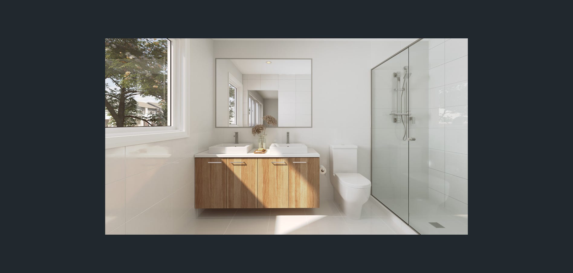 Caesarstone floating vanities with Kado Lux basins