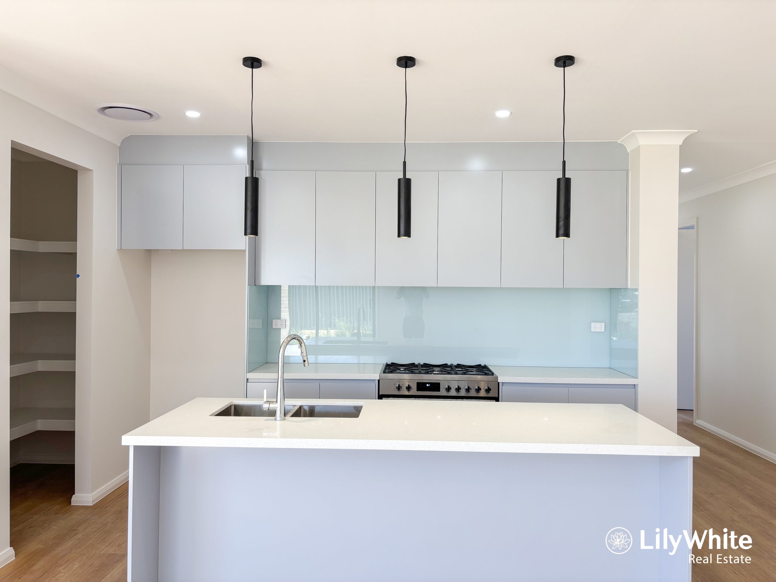 – Contemporary kitchen with gas cooking, walk in pantry, and modern finishes