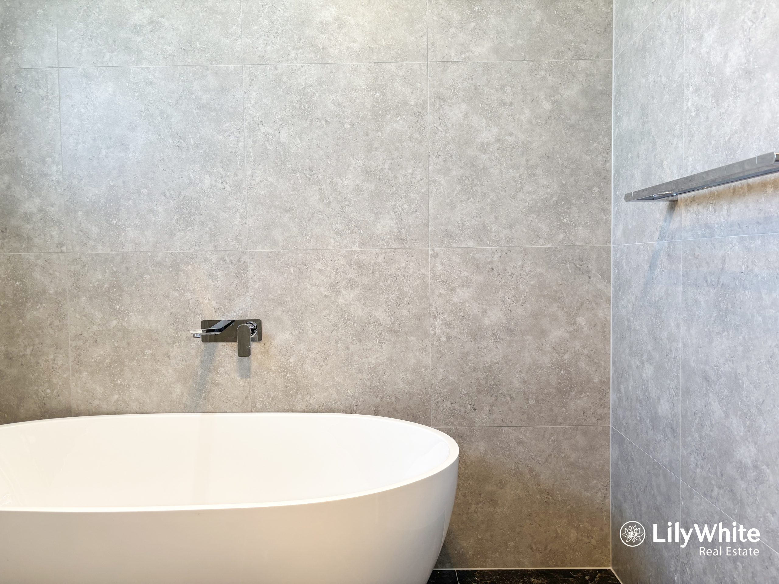 – Sleek main bathroom with bathtub